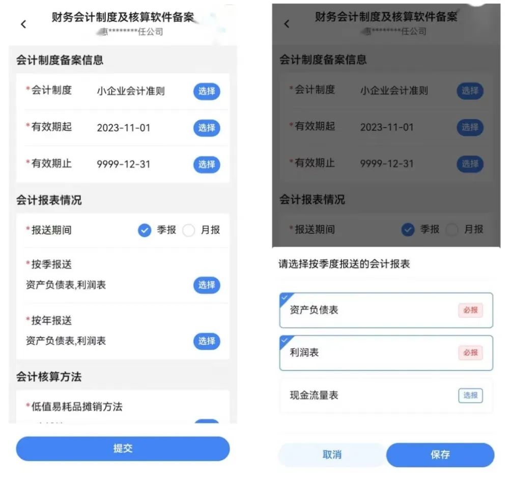(1)若您已进行财务报表报送,则不得直接修改对应申报属期的备案信息。如需修改,请先作废对应申报属期的财务报表报送信息。
