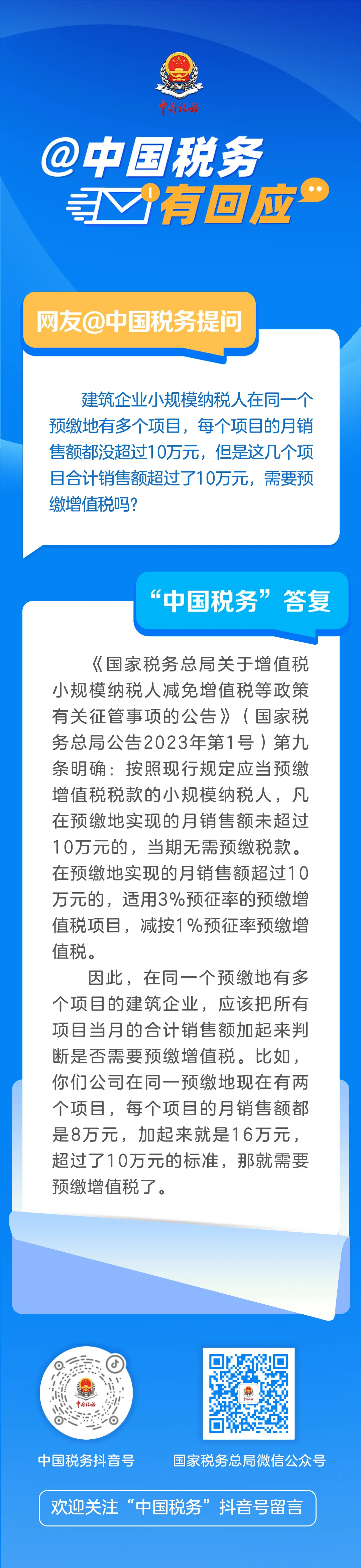 建筑企业同一预缴地有多个项目,合计月销售额超过10万元要预缴增值税吗?