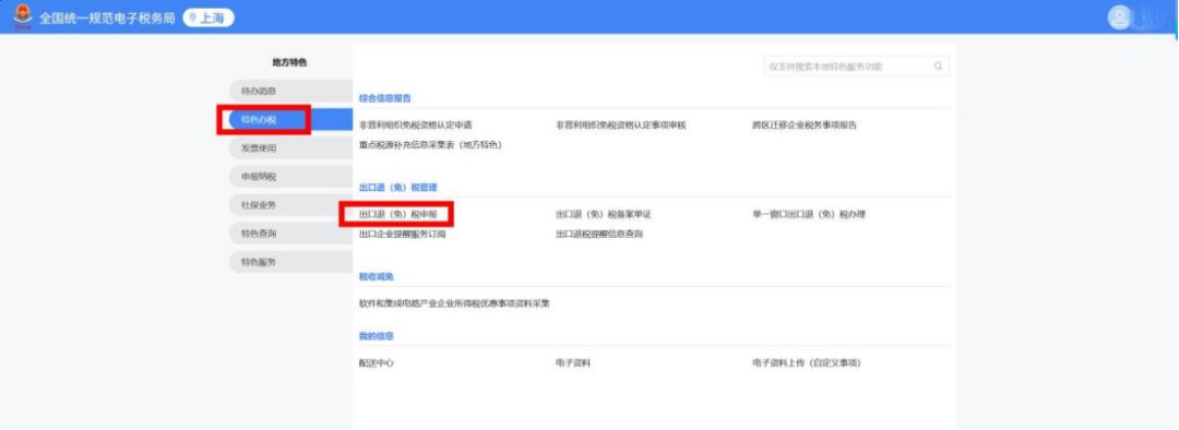 打开电子税务局,点击【地方特色】【特色办税】【出口退(免)税申报】
