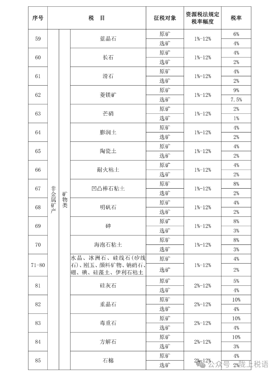 附:甘肃省资源税税目税率表