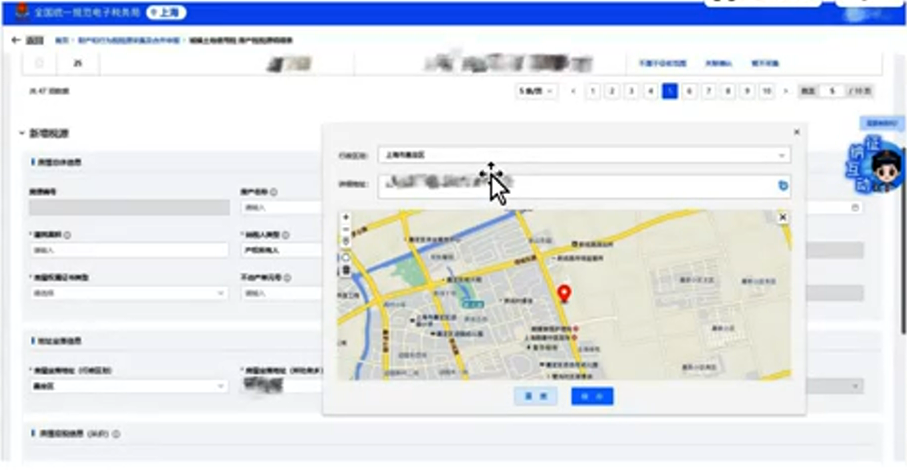 新增的土地等级预填功能,是通过点击“土地坐落详细地址”输入框右侧的地图落地小图标,在系统弹出的税源地图上精确选择土地坐落地址,点击【保存】,系统就会自动预填“土地等级”和“税额标准”。