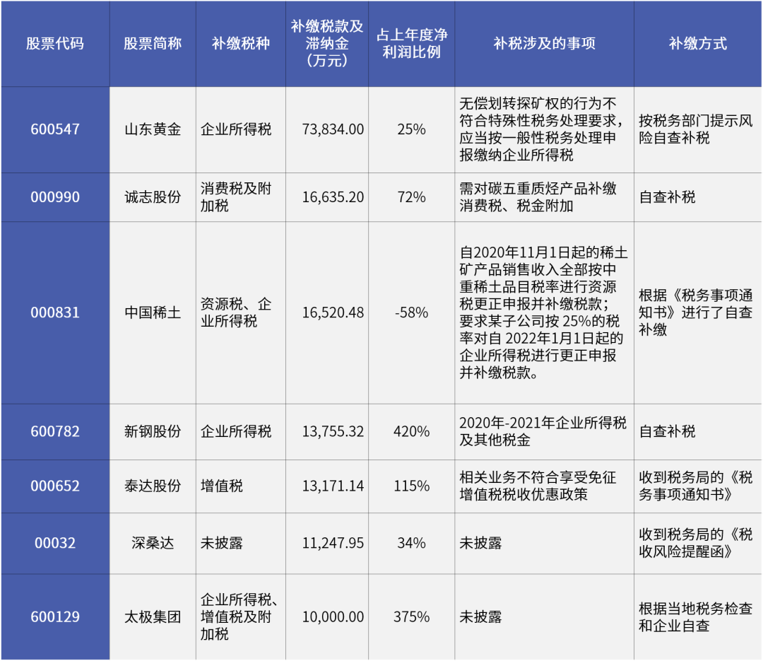2025年1-11月,补税超过1亿元的上市公司共7家,具体补税情况见下表: