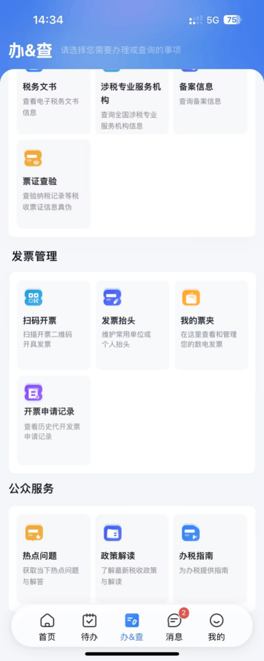 进入“办&查”频道,点击“发票管理→开票申请记录”可查看到历史待申请、待缴款、已开具、已作废等代开申请记录。点击记录信息,将进入记录详情页面,可查看具体记录信息,包括缴款信息、购买方信息、项目信息和备注信息四部分。