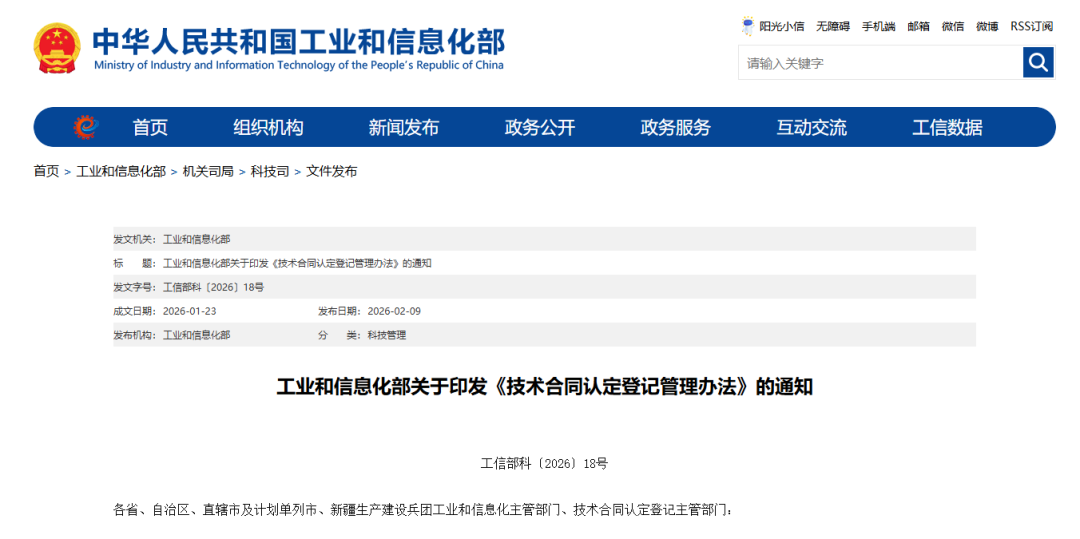 工业和信息化部关于印发《技术合同认定登记管理办法》的通知
