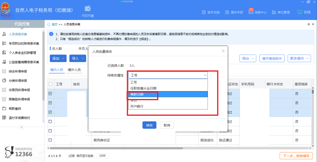 三、提醒员工更新有效联系方式、银行账号等信息,方便后续通知办理年度汇算。如果员工是在3月至6月期间离职的,请扣缴单位协助主管税务机关辅导其办理年度汇算。