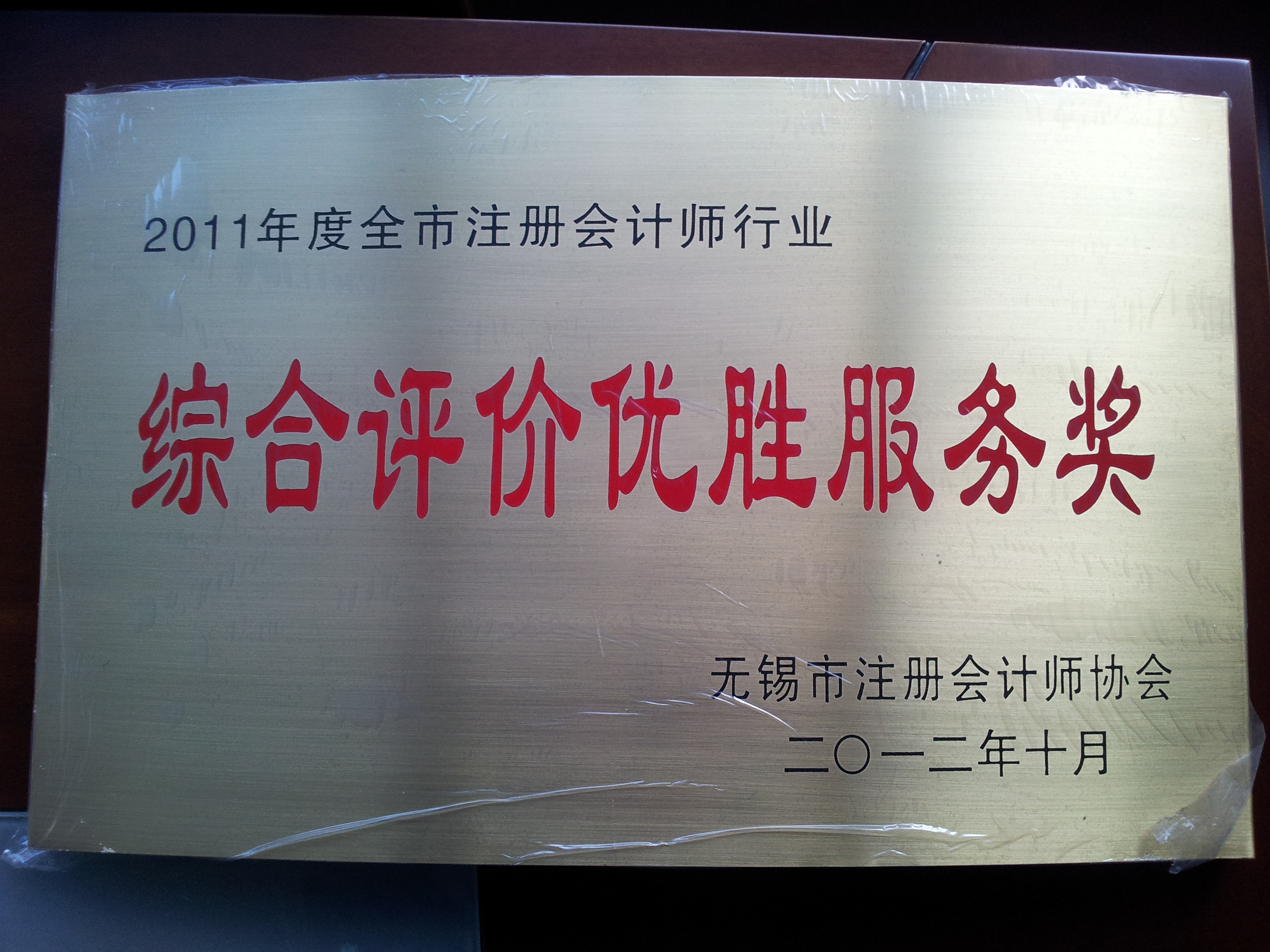 江阴大桥会计师事务所获评“综合评价优胜服务奖“