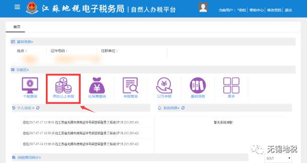 1.进入“自然人办税平台”首页,基础信息显示个人姓名、证件号码和任职单位。