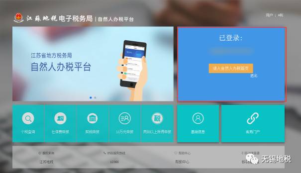 2.网页自然人办税平台显示已登录,点击进入自然人办税首页。