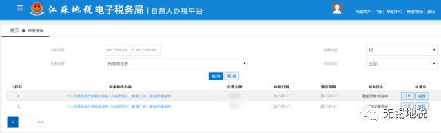 选择申报日期,查询申报记录、申报日期和报表状态等,可进行打印申报表操作。