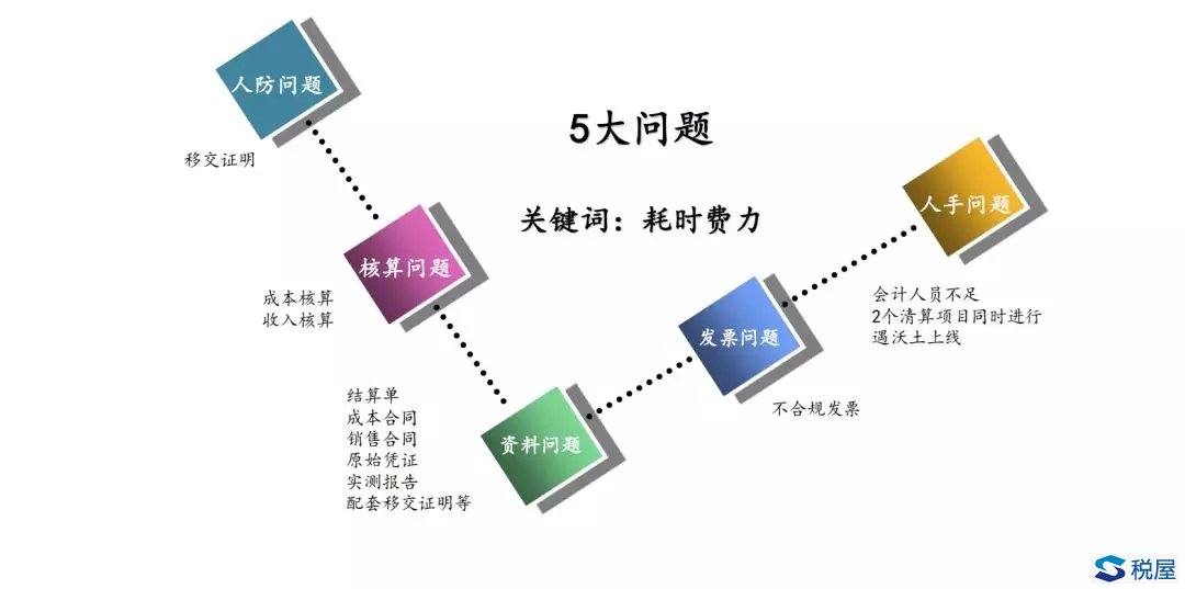 A4:最大的痛点为项目尤其是头些年的项目,没有完整准确的收入成本面积等数据信息可以利用,清算快开始了急于着手集中时间和精力梳理,会计人员有限且没有经历过土增税清算的情况下梳理速度会比较慢,不利于快速推进清算进度和方案落地;最重要的建议就是要打好基础、提前筹划,比如项目资料的完整保存在清算阶段尤其重要,必须提供的资料是清算的要件,否则方案都是虚的,方案提前筹划才能在过程中有的放矢的进行管控。