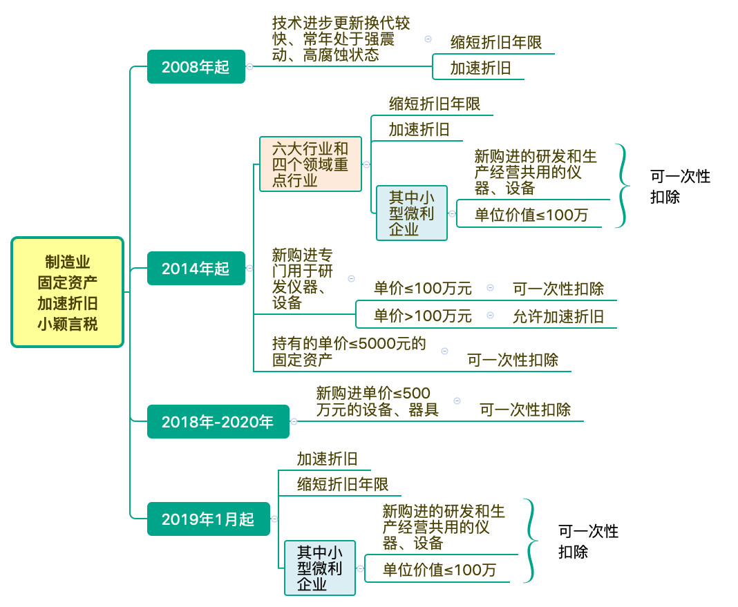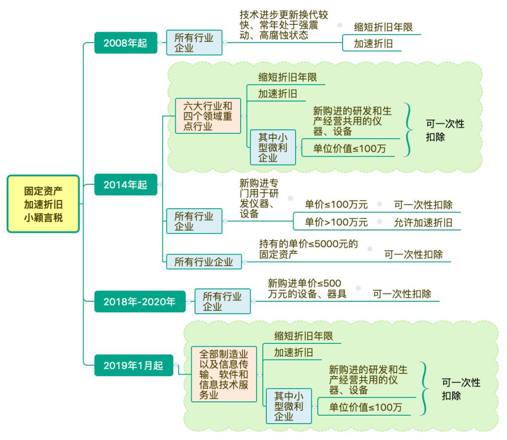 一是六大行业和四个领域重点行业企业新购进的固定资产,均允许按规定折旧年限的60%缩短折旧年限,或选择采取加速折旧方法;