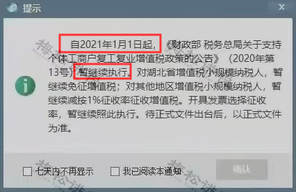 小规模纳税人开票软件升级,自2021年1月1日起,湖北省小规模纳税人,暂继续免征增值税;除湖北省外,暂继续减按1%征收增值税。具体政策延续的内容,以正式文件为准。