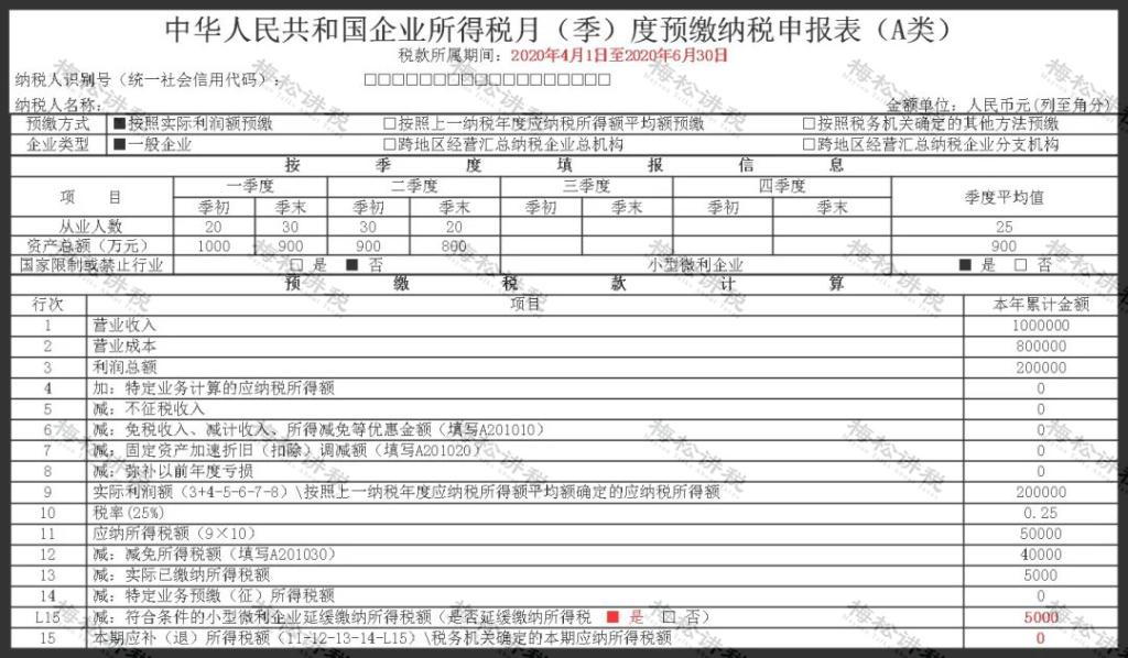 如果企业年度累计计算的应纳税所得额为亏损,当期无需预缴企业所得税,也无需补预缴第二、三季度延缓缴纳的税款。