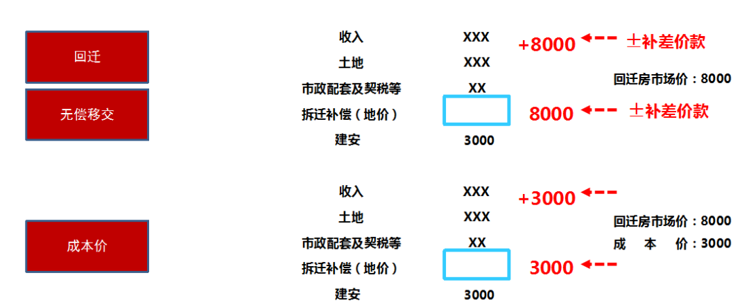 国税函(2010)220号文第六条规定“房地产企业用建造的本项目房地产安置回迁户的,安置用房视同销售处理,按《国家税务总局关于房地产开发企业土地增值税清算管理有关问题的通知》(国税发[2006]187号)第三条第(一)款规定确认收入,同时将此确认为房地产开发项目的拆迁补偿费。房地产开发企业支付给回迁户的补差价款,计入拆迁补偿费;回迁户支付给房地产开发企业的补差价款,应抵减本项目拆迁补偿费。”