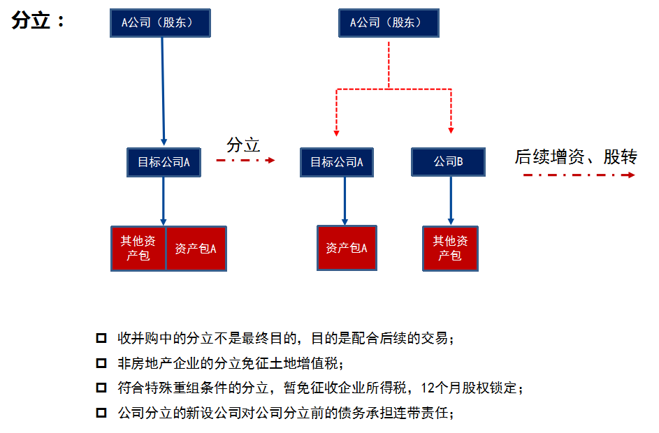 标的资产所在公司另有其他业务,而其股东/我司不希望涉及除土地外的其他业务的情况。
