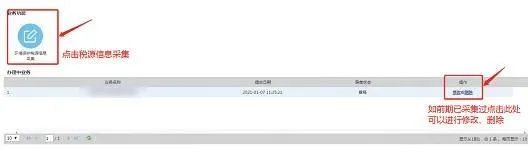 如前期已税源采集过但信息不完整的点击办理中业务栏列表的“修改或删除”按钮进行修改、删除操作。