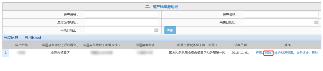①土地、房产基本信息发生变化:在需要修改的土地、房产信息上点击“修改”,进行信息修改,确认无误后点击“提交”。