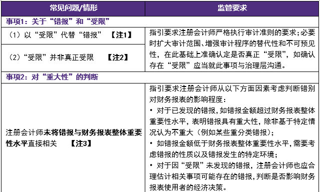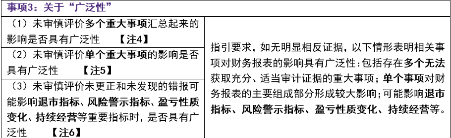 注6:个别上市公司虽然某一错报涉及的财务报表项目较为有限,但导致净资产为负,可能影响其退市,但注册会计师仍认为上述事项的影响不具有广泛性,合理性存疑。