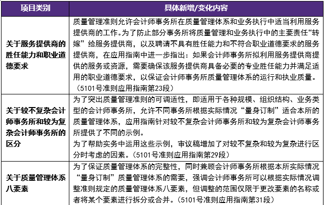 2020年11月19日,财政部印发了会计师事务所质量管理相关准则(财会〔2020〕17号)。中国注册会计师协会相应修订(制定)了配套应用指南,包括《<会计师事务所质量管理准则第5101号——业务质量管理>应用指南》(修订)、《<会计师事务所质量管理准则第5102号——项目质量复核>应用指南》(制定)以及《<中国注册会计师审计准则第1121号——对财务报表审计实施的质量管理>应用指南》(修订),并于2021年11月2日发布,与对应的准则同步实施。