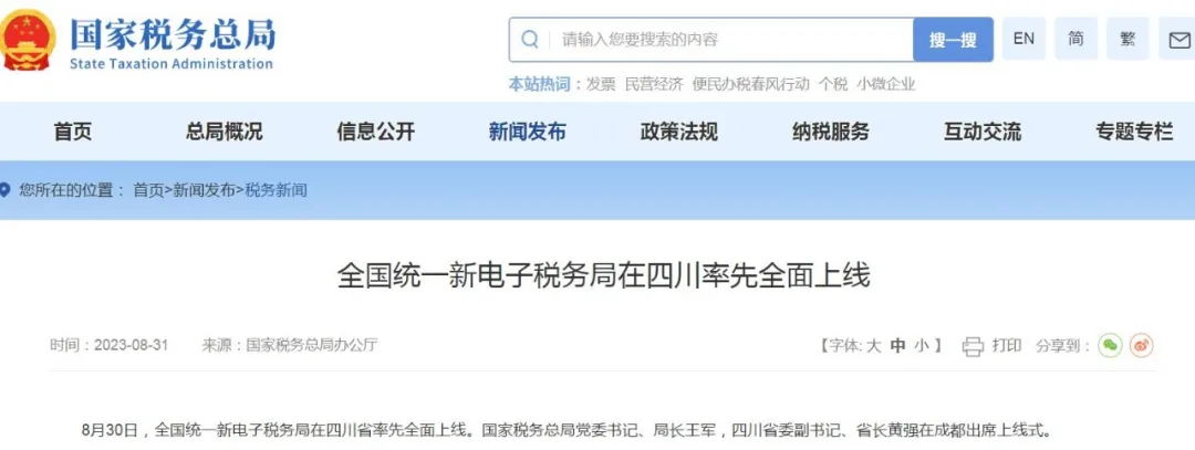 据了解,全国统一新电子税务局是在目前各地运行的电子税务局基础上,坚持以纳税人为中心,依托现代信息技术、融合线上线下业务、整合实体虚拟资源,进一步推动服务更智能、办税更高效、监管更精准,更好促进降低制度性交易成本。四川作为全国统一新电子税务局的第一个试点省份,自2022年底开始试点运行,通过不断优化完善功能、升级迭代系统,并有序扩围推进,于2023年8月30日实现四川省所有纳税人全覆盖。