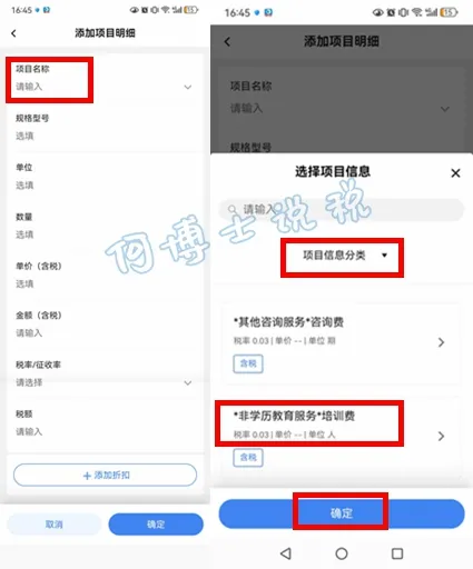 5、选择或者填写开票内容,电脑端已经使用过的税收编码及名称,也关联到手机APP系统,可以直接点击选择