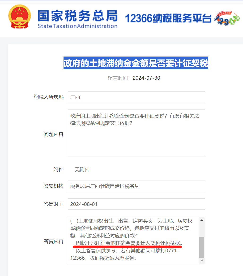 政府的土地出让违约金金额是否要计征契税?有没有相关法律法规或条例规定文号依据?