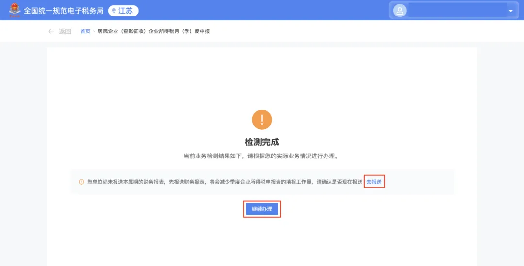 建议纳税人在申报期内先报送财务报表,再申报同期企业所得税。
