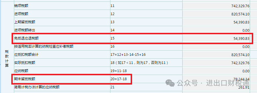 企业退税流程完成税额核准后,在次月申报增值税时,系统会将退税额自动提取至主表第15栏 “免、抵、退应退税额”,同时留抵税额相应减少。