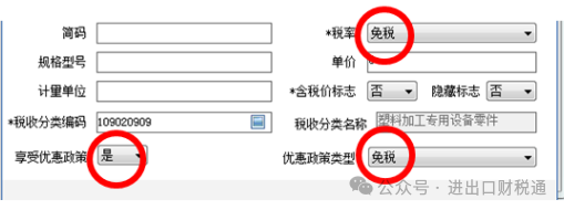 ②出口免税的货物,出口发票税率栏选择 “免税”。开票系统需要设置享受优惠政策为“是”,优惠类型选择“免税”。