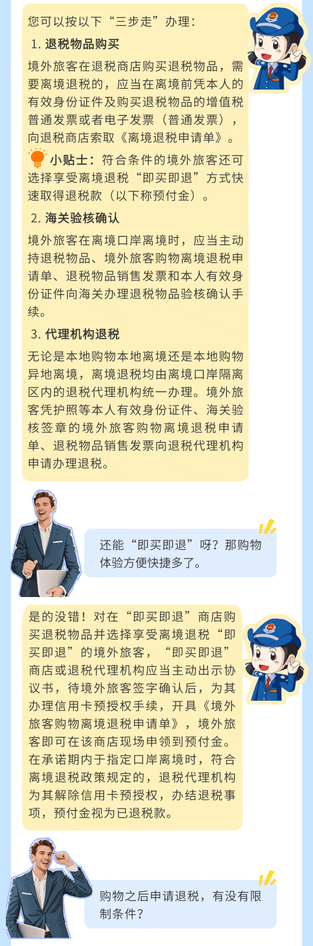 境外旅客购物离境申请退税,还能“即买即退”?一图带你了解!