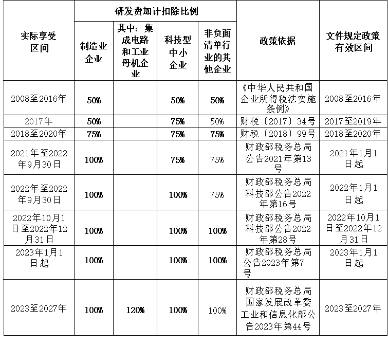 为便于企业追溯调整和弥补亏损,将研发费用加计扣除政策沿革情况总结如下: