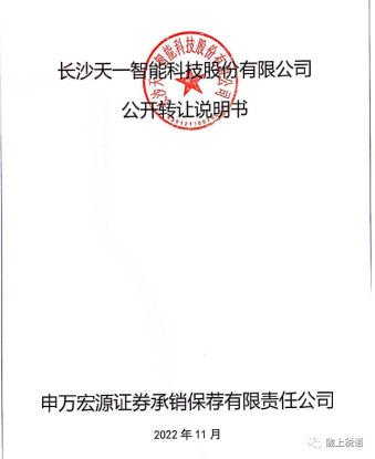 长沙天一智能科技股份有限公司在2022年11月30日公布的《公开转让说明书》中披露了一起股权划转事宜。