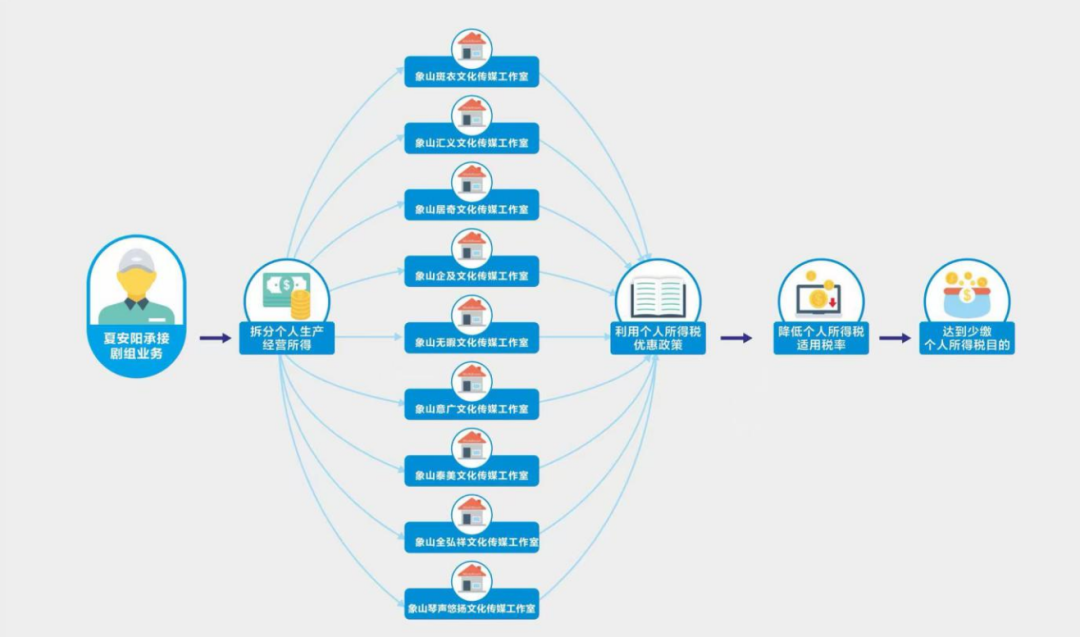 经核查,夏安阳通过控制象山斑衣文化传媒工作室等9户个体工商户拆分收入少缴个人所得税税款345.92万元。