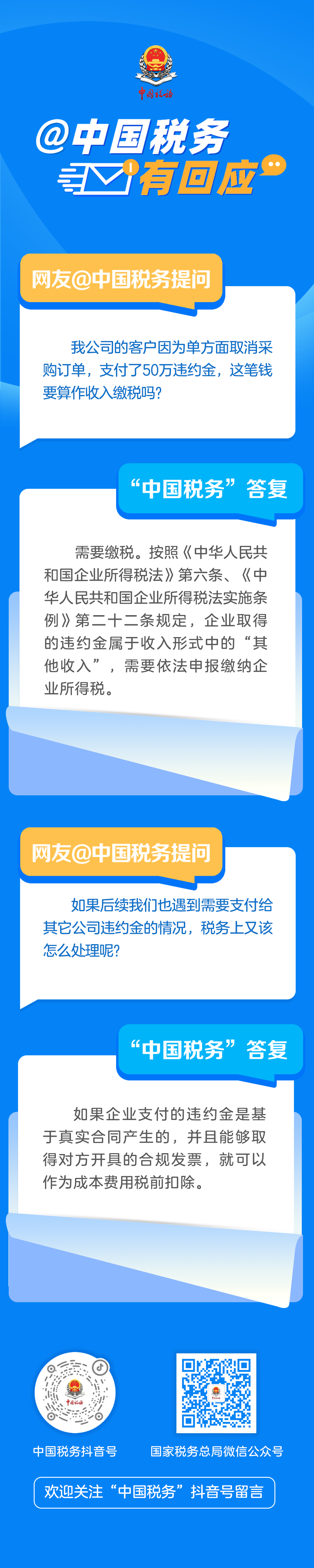 @中国税务有回应丨企业收到或支付违约金,企业所得税如何处理?
