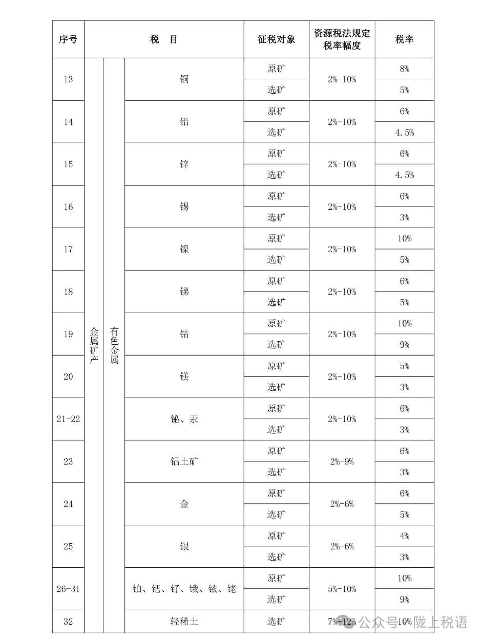 附:甘肃省资源税税目税率表