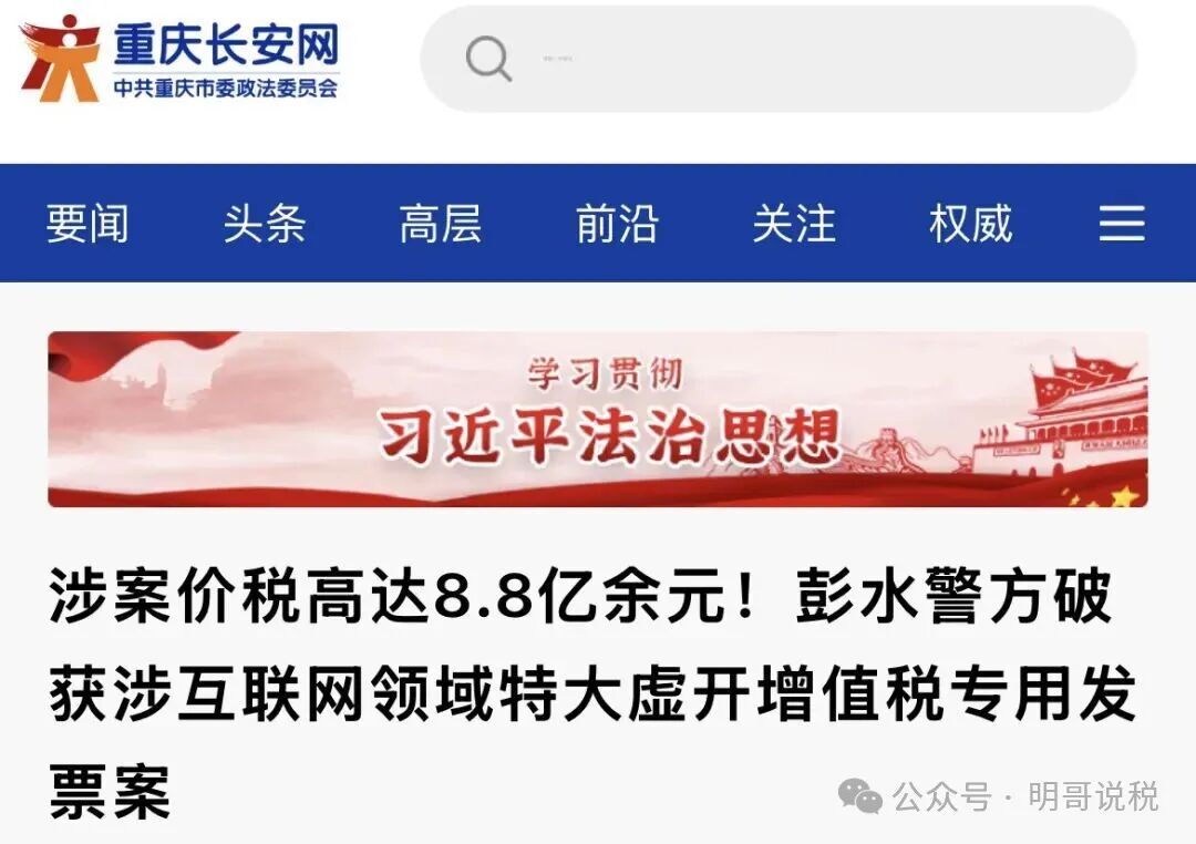 涉案价税高达8.8亿余元!彭水警方破获涉互联网领域特大虚开增值税专用发票案 短视频APP官方充值代理商利用"富余票"大肆虚开