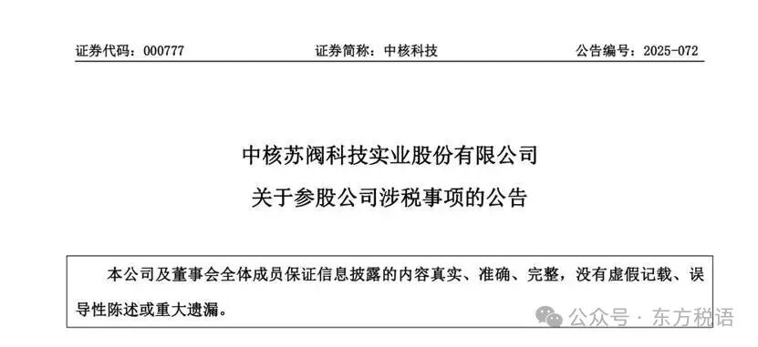 关于参股公司涉税事项的公告