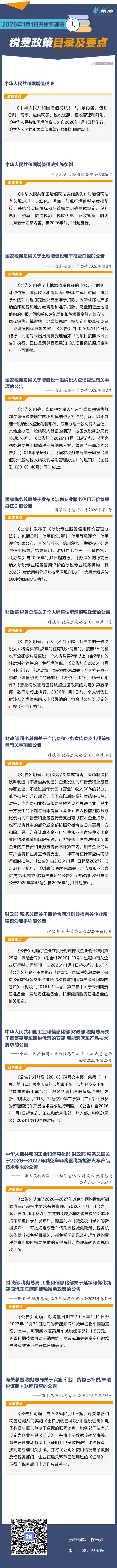 收藏学习!2026年1月1日开始实施的税费政策