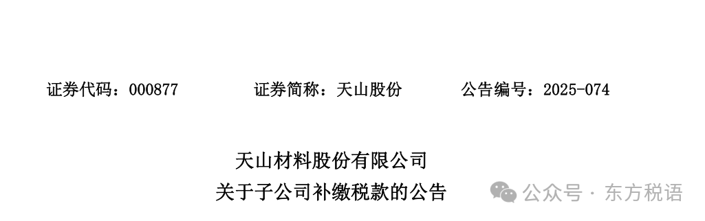天山材料股份有限公司(简称“公司”)子公司根据企业自查情况,需补缴税款及滞纳金共计约 6,185.58 万元。截至本公告披露日,子公司已将上述税款及滞纳金缴纳完毕,本次涉税事项不涉及行政处罚。