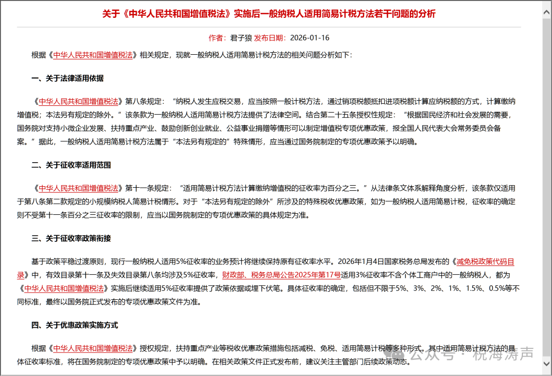《增值税法》实施后一般纳税人适用简易计税方法若干问题的分析