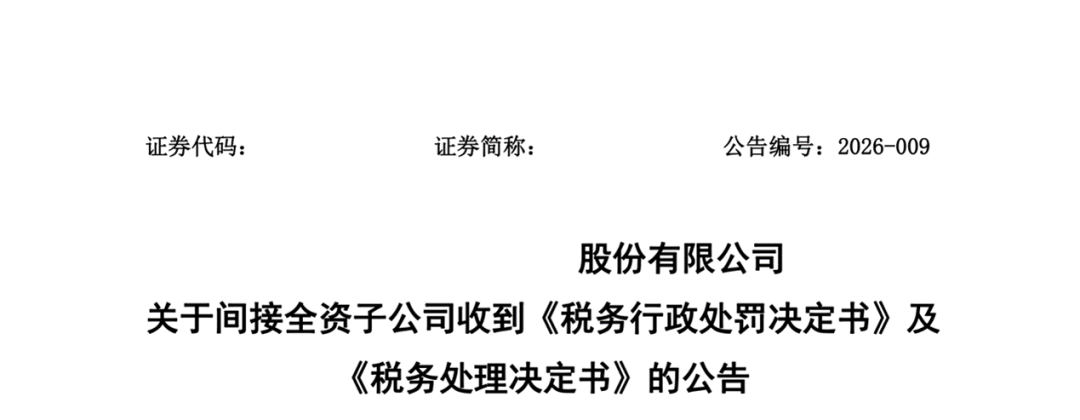 Q科技发展股份有限公司 (以下简称“Q”或“公司”) 于近日收到公司间接全资子公司A环保服务有限公司(以下简称“A公司”)关于收到国家税务总局安阳市税务局第二稽查局(以下简称“安阳市税务局第二稽查局”)下发的《税务行政处罚决定书》(安税稽二罚[2026]1号)及《税务处理决定书》(安税稽二处[2026]2号)的重大事项报告,现将相关情况公告如下: