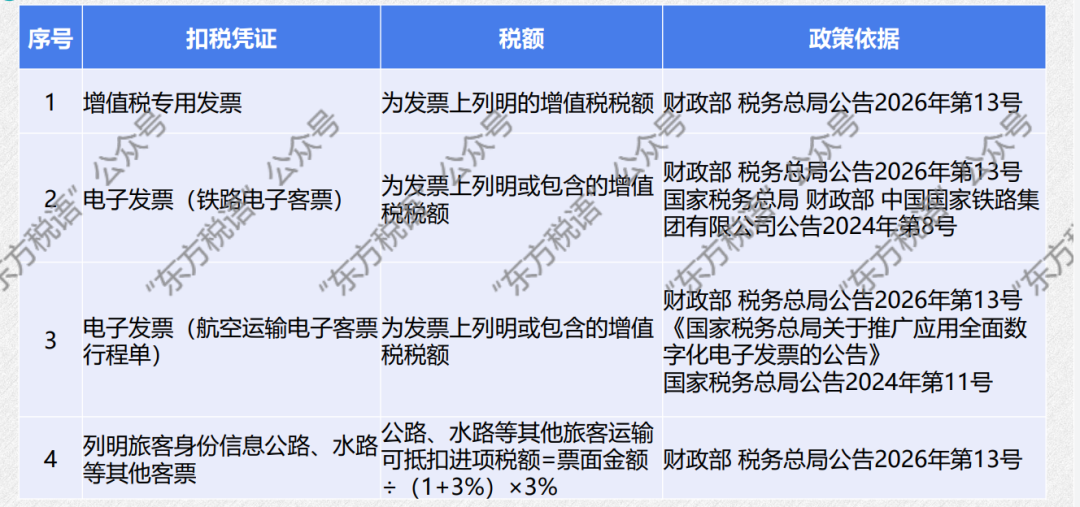 根据最新下发的财政部 税务总局公告2026年第13号规定,一般纳税人购进国内旅客运输服务,除取得增值税专用发票外,按照以下规定确定可以从销项税额中抵扣的进项税额: