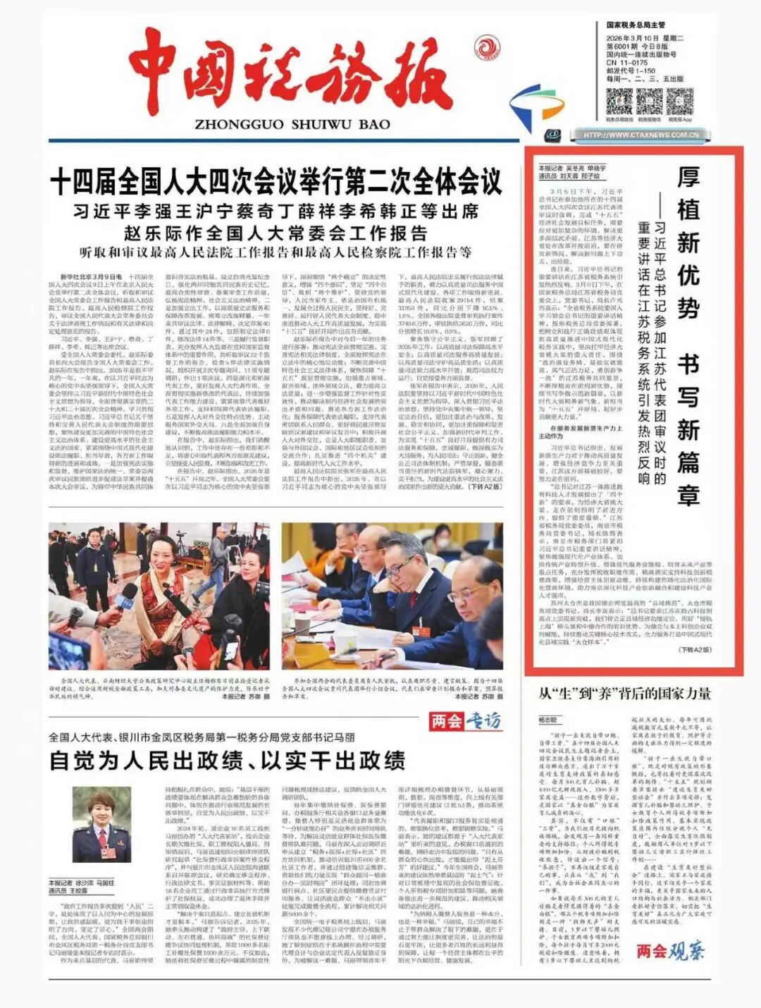 连日来,习近平总书记的重要讲话在江苏省税务系统引发热烈反响。3月6日下午,在国家税务总局江苏省税务局党委会上,党委书记、局长许光烈表示:“全省税务系统要深入学习领会总书记的重要讲话精神,按照税务总局党委部署,把树立和践行正确政绩观体现到高质量推进中国式现代化税务实践中,坚决扛牢经济大省挑大梁的重大责任,围绕‘政治强业务精、基础实效能高、风气正活力足、勇创新争一流’的江苏税务共同愿景,不断厚植走在前列新优势,接续书写争做示范新篇章,以新时代大省税务新气象、新担当为‘十五五’开好局、起好步贡献更大力量。”