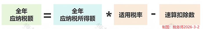 公式二:算全年应纳税额(按税率表计算)