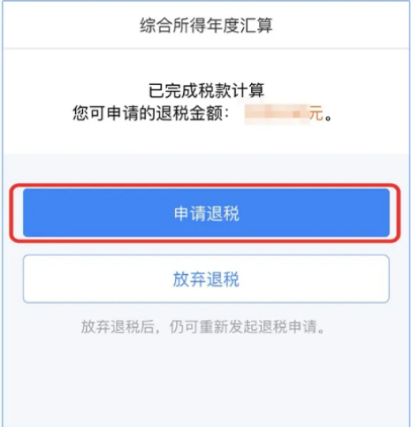 1、退税:跳转到退税页面,点击【申请退税】,绑定银行卡,坐等退税款到账;放弃退税的直接点【放弃退税】即可。