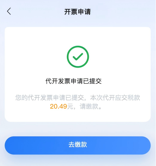 确认无误后,点击提交完成代开申请信息提交。