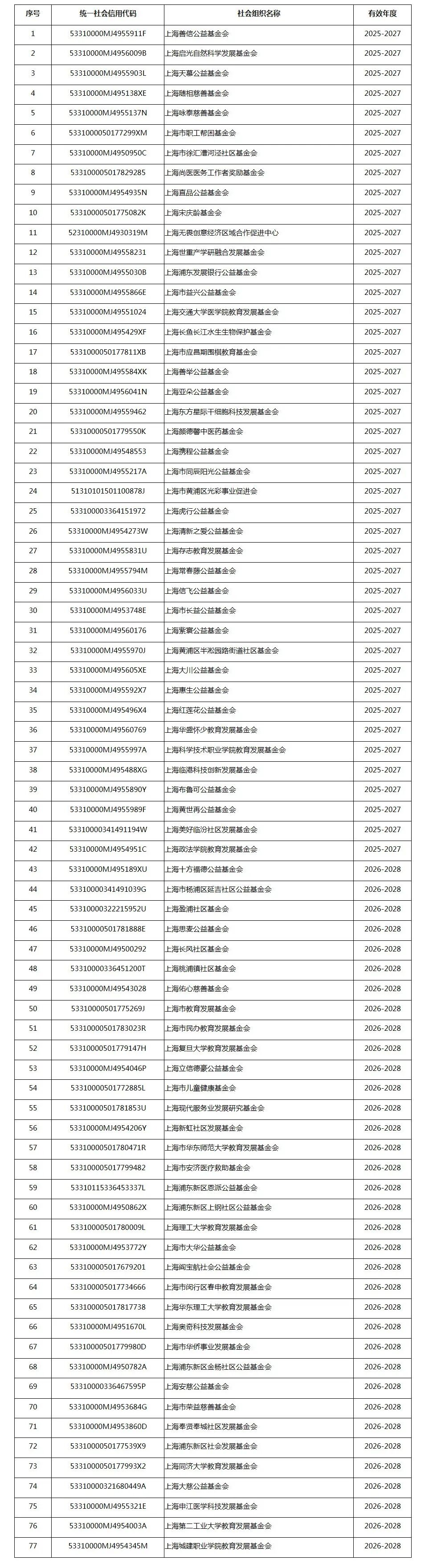 附件:上海市2025年度—2027年度(第四批)和2026年度—2028年度(第三批)符合公益性捐赠税前扣除资格的公益性社会组织名单