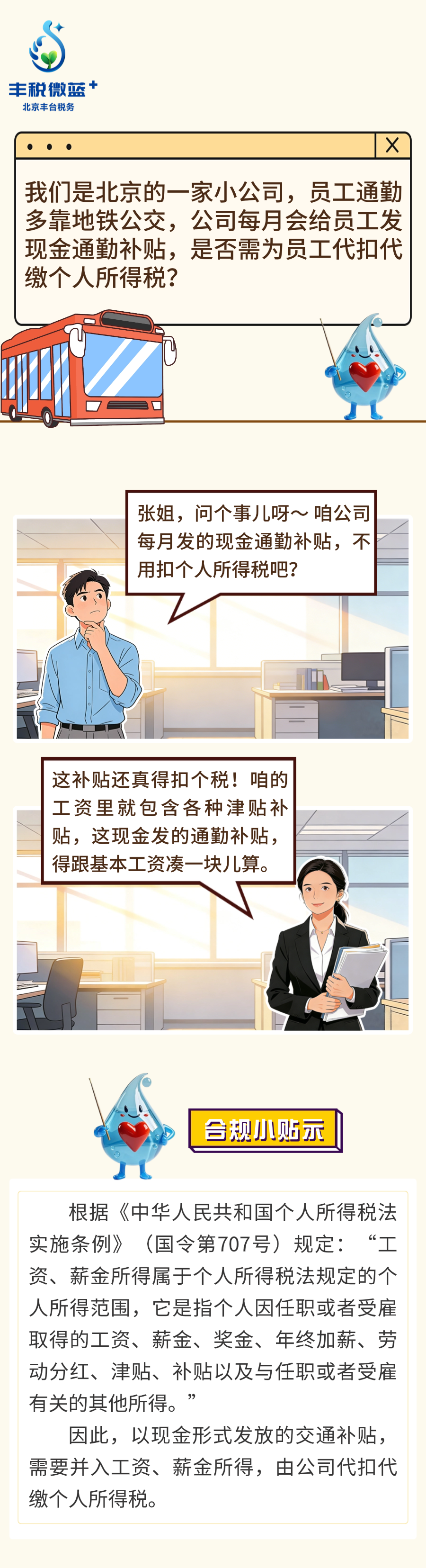 给员工发的现金通勤补贴需要代扣代缴个税吗?