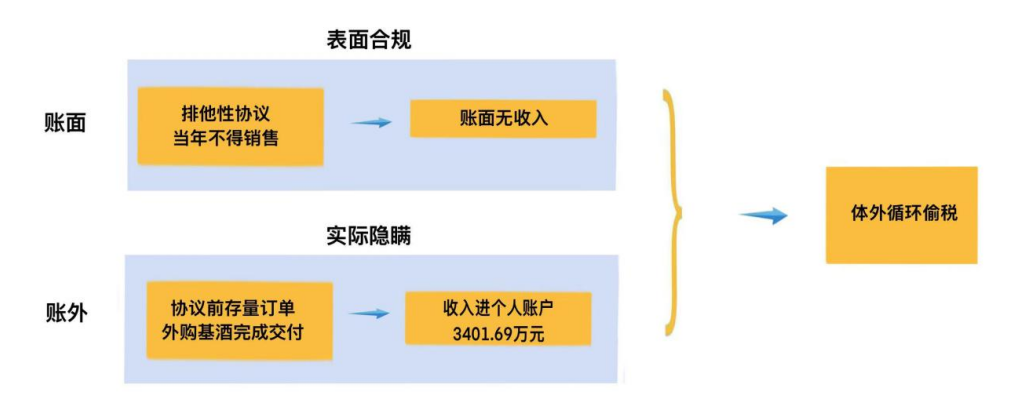 随着检查的深入,企业法定代表人承认,为了履行2021年前签订且已收取定金的存量合同,鹏程酒厂在签订排他性协议后,通过外购基酒和包装材料完成了订单交付,而这些交易产生的销售收入,均未经过企业对公账户。