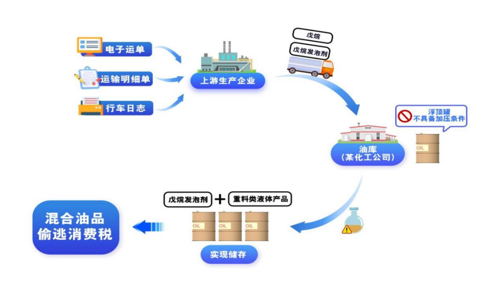 前期,国家税务总局茂名市税务局稽查局依托大数据比对分析发现,宏坚石化2023年存在购进戊烷、戊烷发泡剂等敏感油品的发票,却无对应销售开票记录,可能存在隐匿混合油品并偷逃消费税的嫌疑。